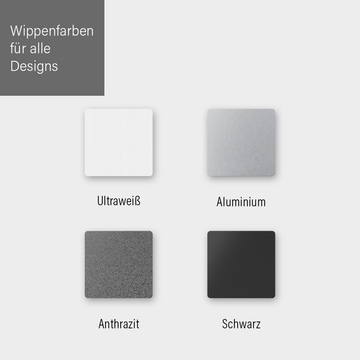 - 3 Farben für die Abdeckungen: Die Abdeckungen, wie z. B. Wippen und Steckdosenfrontblenden, sind in 3 verschiedenen Farben erhältlich: White, Sand und Black. Die satinierte Oberfläche sorgt für ein angenehmes Bediengefühl.